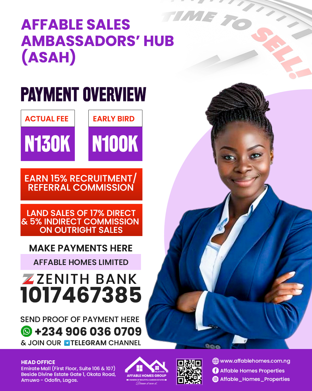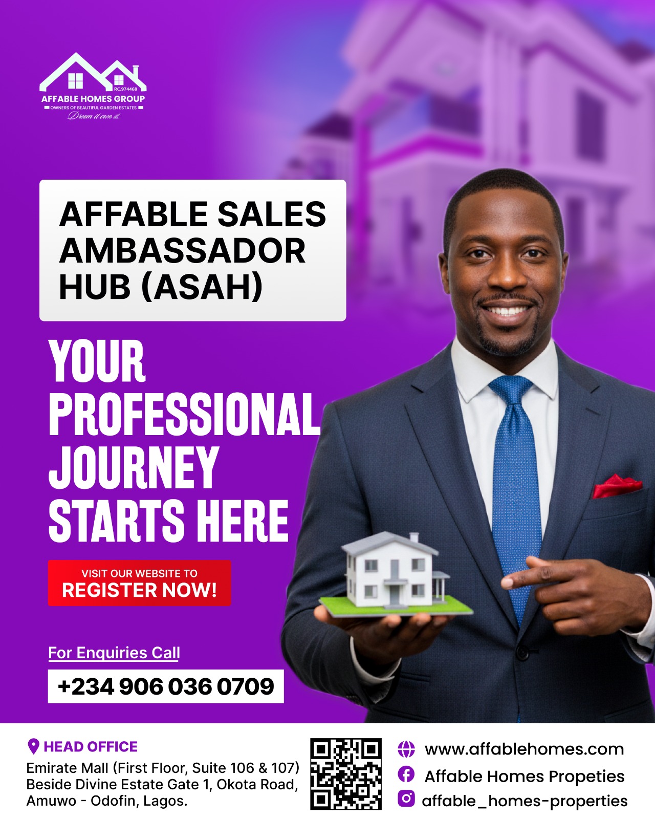 The Affable Sales Ambassador Hub (ASAH) is more than just a commission structure — it is a professional platform that recognizes skill, consistency, and dedication. If you are an experienced property consultant with a track record of successful sales, this is your gateway to higher earnings and long-term growth.
