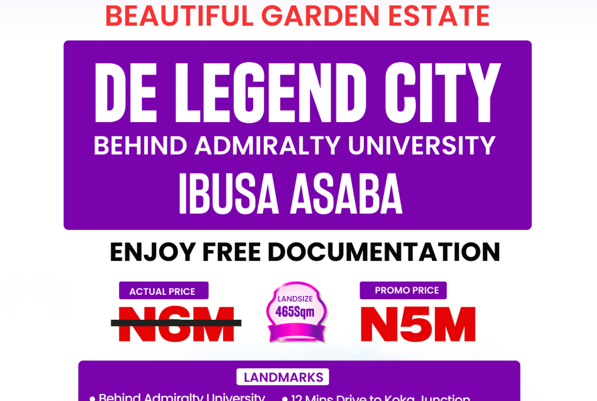 Beautiful Garden Estate: De Legend City, Ibusa, Asaba, Delta State!